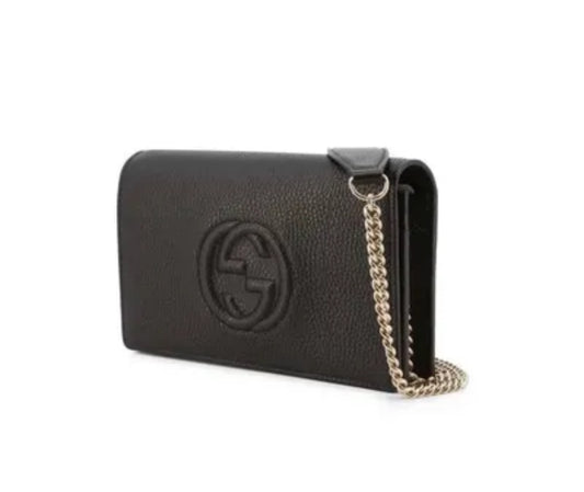 Gucci Soho Pebbled CalfSkin Chain Wallet Brand New